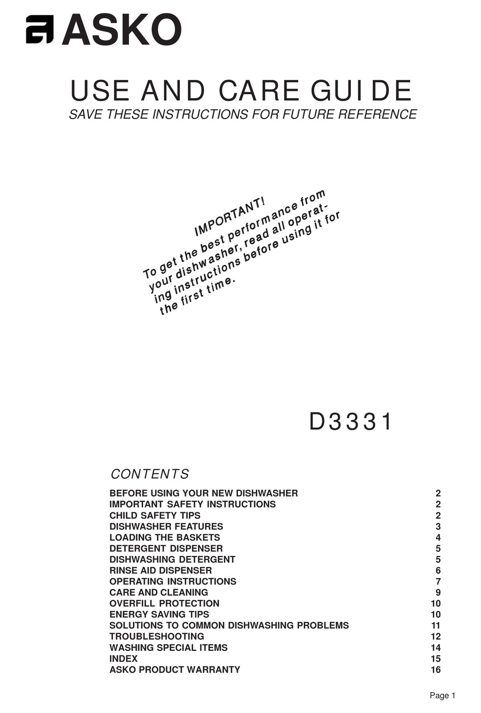 Asko D3350 User Guide Page 1 Of 40 Manualsbrain